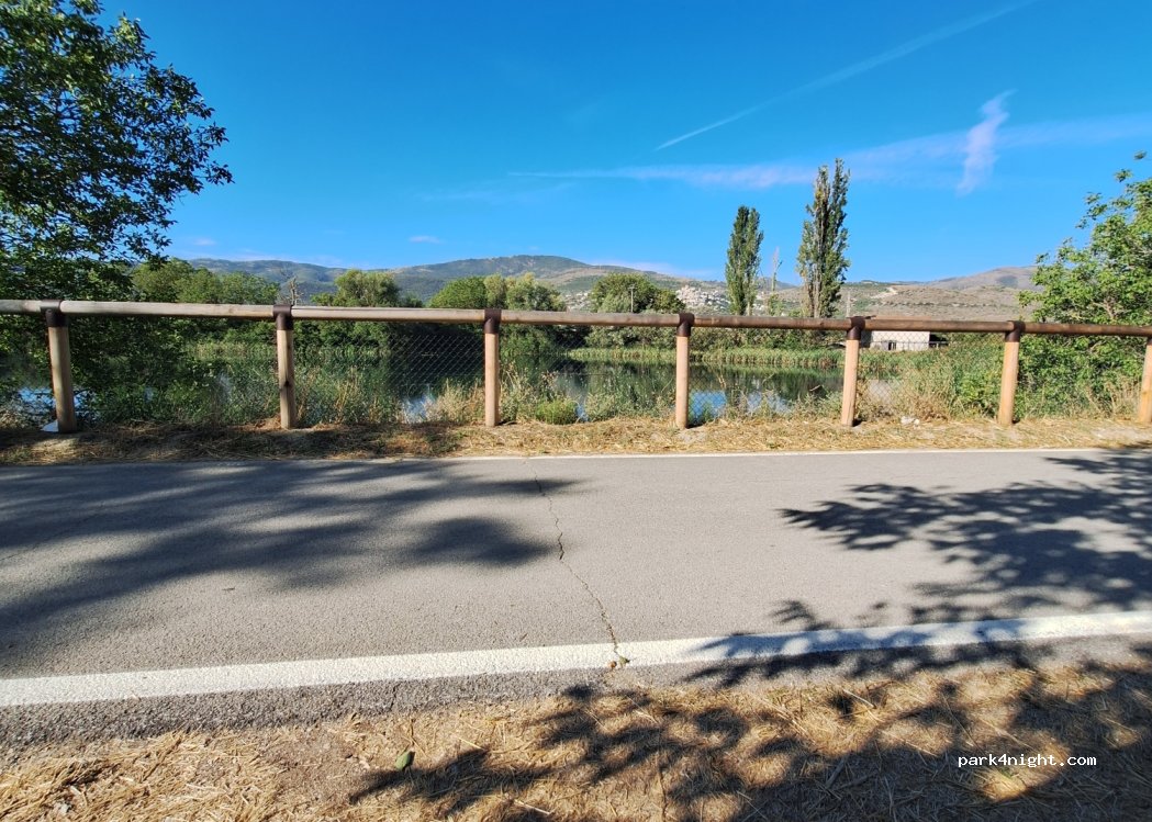 Una piazzola lungo la stradina che costeggia il lago di capodacqua ,cè spazio per 6 camper. È in mezzo alla natura, non ci sono servizi, noi abbiamo passato qui una notte senza problemi.