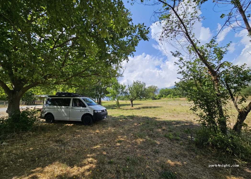 molto vicino alla strada. possibilità di parcheggiare nel campo sotto gli alberi ma da considerare solo come sosta veloce e di passaggio. più avanti spot migliori vicino all' abbazia di San Pietro