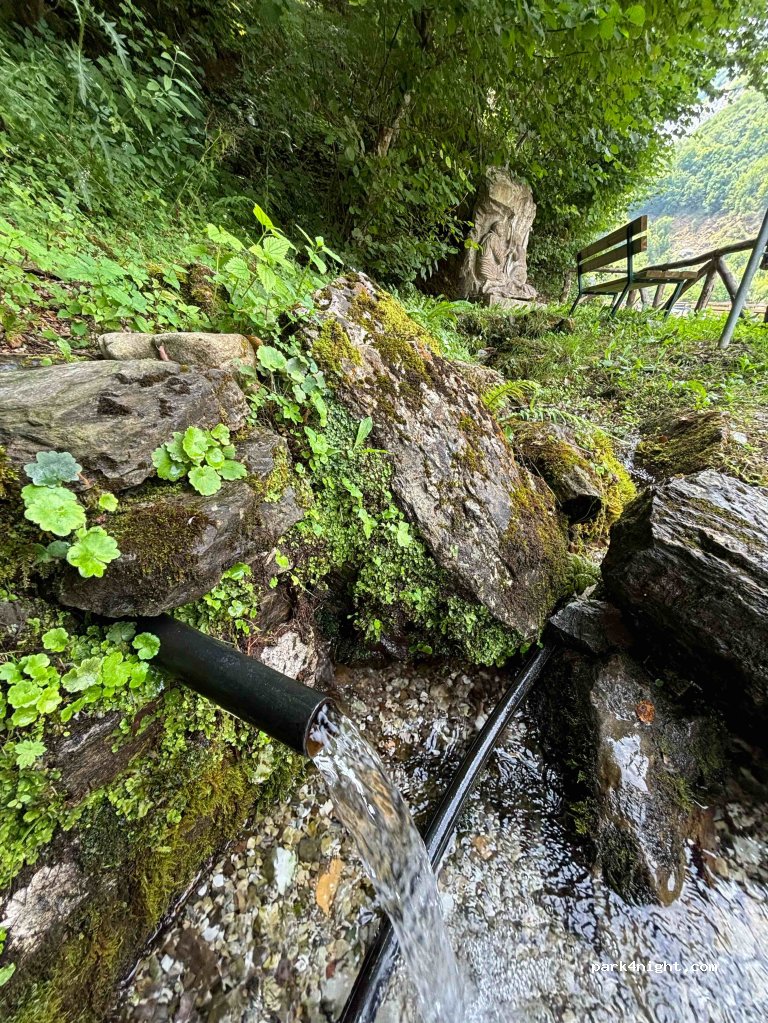 Trinkwasser, sehr kalt, aus einer unterirdischen Quelle.