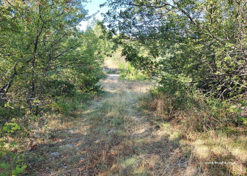 Only for van or car because entry at 90 degrees from the small road and passage under branches.