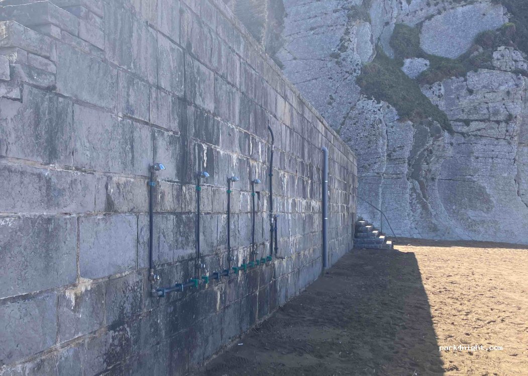 Duchas tanto al aire libre a pie de playa como aseos y duchas cubiertas. sin agua caliente. libre acceso. Lo necesario para refrescarte y para una ducha rápida.