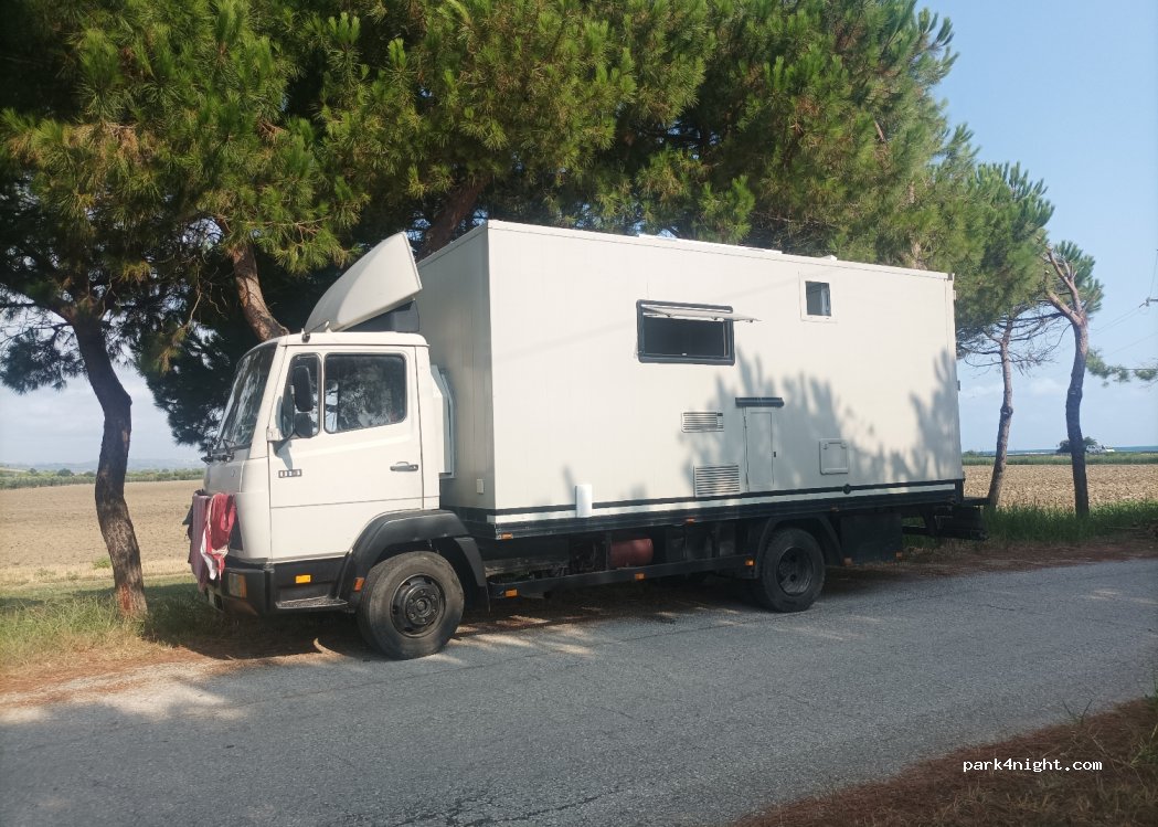 Wir haben hier eine Nacht verbracht, es ist ein sehr ruhiger Ort und man kann unter den Pinien parken. Wir dachten, es wäre laut, da es eine kleine Straße zwischen einem Autobahnparkplatz und einem ist