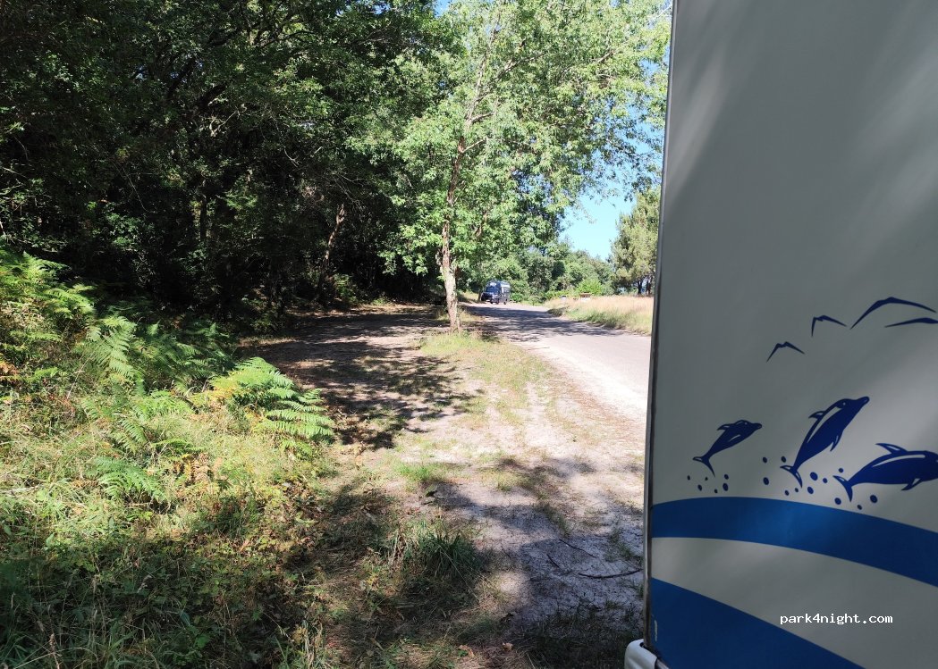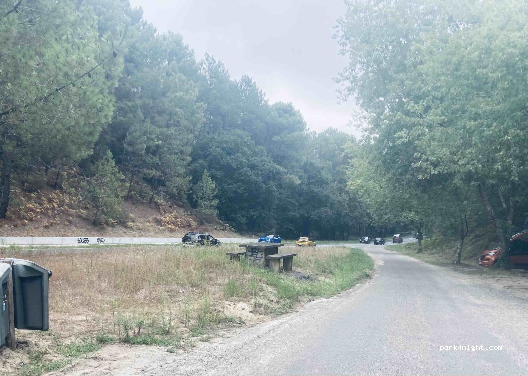 Sitio al lado de una carretera por la que no dejaban de pasar coches (era un poco molesto). Agradable por los árboles y las mesas de merendero que había. Hay sitio para unos 5 o 6 vehículos (incluso más).