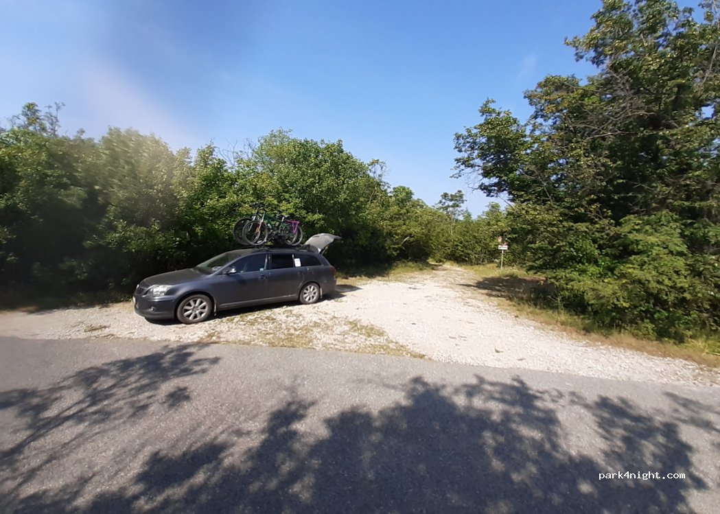 Gravel shoulder on a one-way road. Very little traffic. There is space for 2 vans or 1 camper. Network ok. Perfect place for 1 or 2 quiet nights.