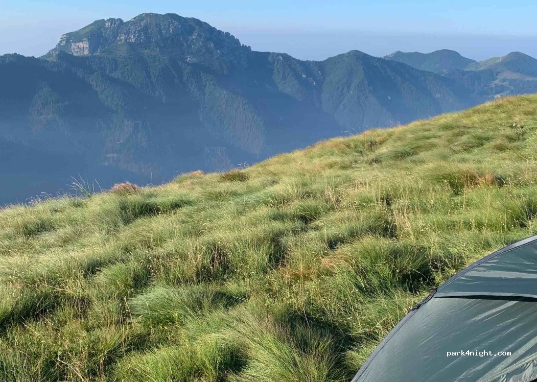 Picnic area next to the road with a beautiful view of the mountains and Hotel Bonardi. There are 2 picnic tables and a lot of space for parking. Also if with a car it’s possible to go down a gravel road closer to the picnic tables and be more secluded from the road. Spent a night here and was woken up with a beautiful view. Quiet at night, in the morning a bit of traffic from motorcycles and cars. Bevare of wind in the evening as this place is quite high up in the mountains.