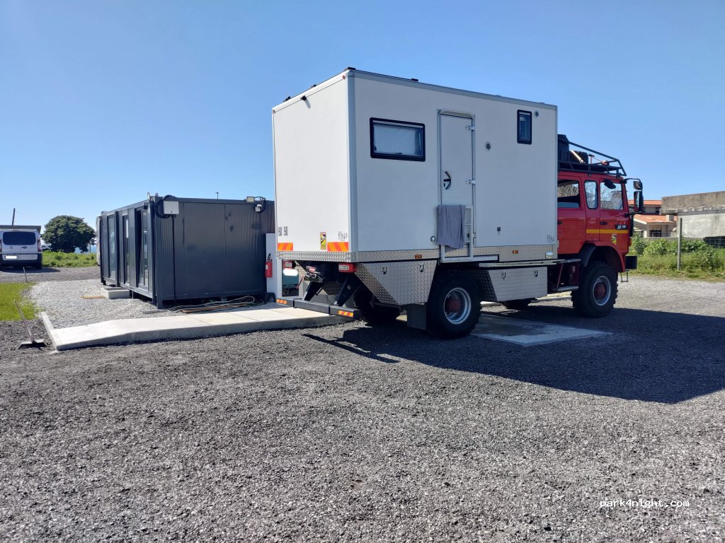Perfecta para dejar la AC con seguridad y poder ir a visitar Oporto. Cambio de aguas, poty, y grises por 7€, 24h, es competitivo. Bruno muy amable, y la instalación en mejora constante.