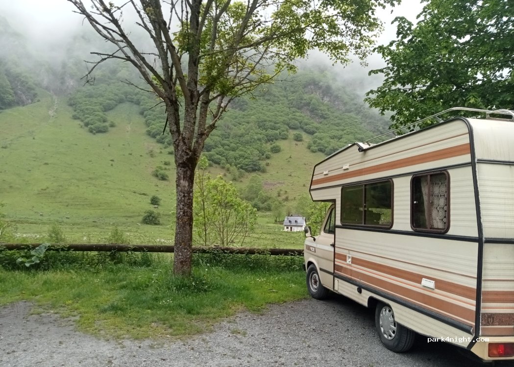 parfait pour une halte la nuit gratuit,calme, montagne, vaches,chevaux au départ de la randonnée pour le lac d oô 2 restaurants :nous avons testé la " grange d astau" excellent toilette et douche publiques (2€) très propres. merci