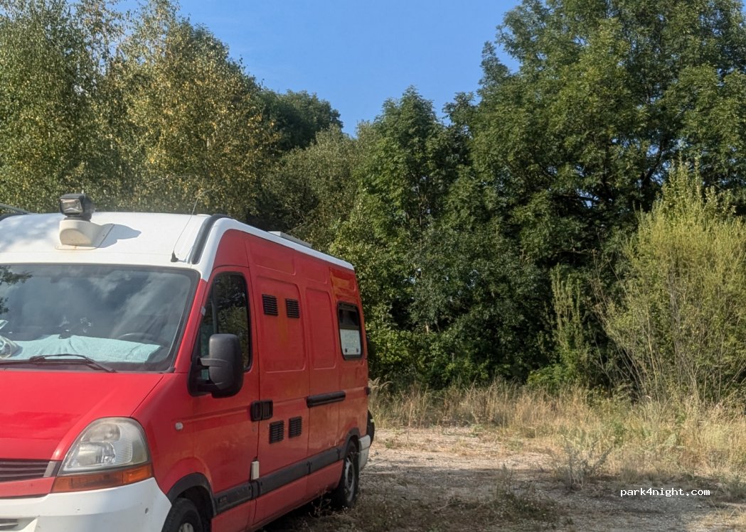 Petit emplacement, accessible aux gros véhicules. Nous y sommes restés pour la nuit, calme. Pratique pour visiter le château.