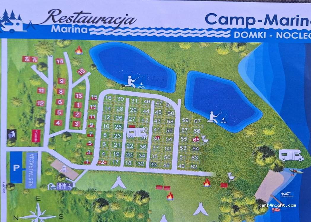 Netter Empfang, schöne Stellplätze zur freien Auswahl. Strom, Wasser inkl. 130,- Zloty pro einer Nacht, ab zwei Nächten 110,- Zloty. Direkter Zugang zum See. Wc und Dusche modern und sauber. Entsorgung etwas tricky mit schmaler Zufahrt ohne Wendemöglichkeit. Restaurant eingeschränktes Menu mit nur einem Essen. Ab 17.00 zwar nur Pizza und keine nationale Küche, dafür aber top selbstgemacht.