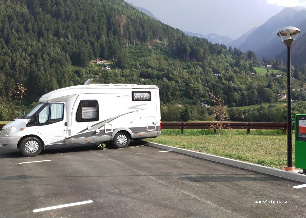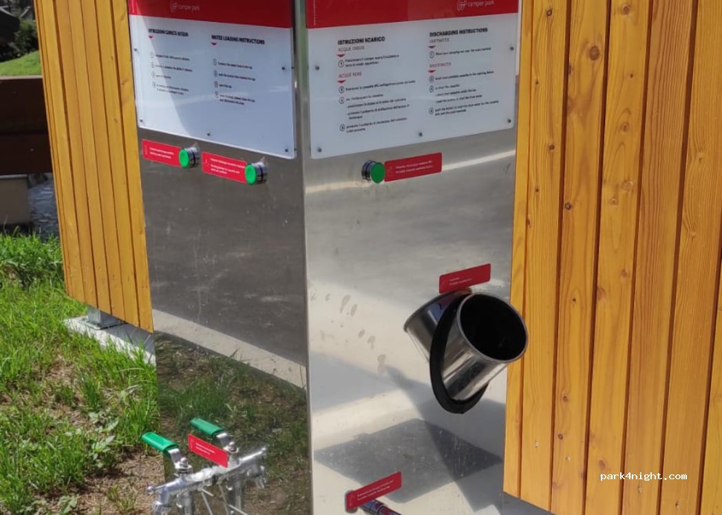 Arrivato il 30 agosto, e sostato 4 giorni, al momento occorre contattare telefonicamente il comune per comunicare arrivo e targa, recarsi poi a pagare in comune, 15 euro giorno, corrente, carico/scarico compresi, raccolta differenziata davanti all'ingresso, tranquilla, ottima visita e praticamente in paese, per raggiungere l'area non seguire il navigatore ma entrare dalla località Davena. Ottima