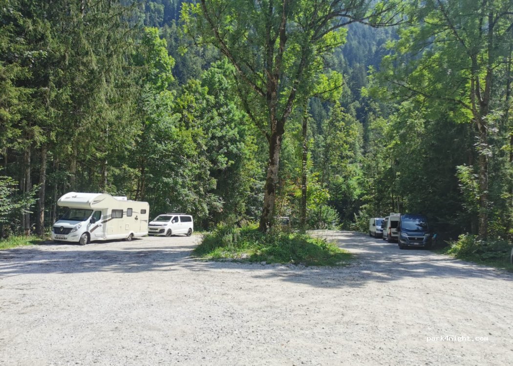 parking idéal juste avant l'entrée payante de la vallée. normalement interdit au camping car. Nous n'avons pas passé la nuit là. départ idéal pour une sortie en vélo merci de respecter les lieux et de ramasser vos déchets. Idem pour les excréments. sinon des lieux comme cela n'existeront plus et il faudra payer.