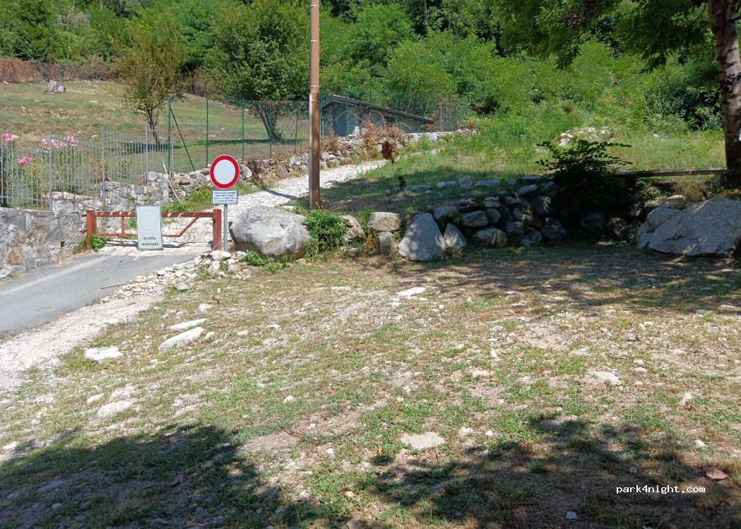 En lo alto de la carretera, acceso muy empinado y estrecho, callejón sin salida, pequeño lugar en pendiente para aparcar durante el día. Salida para una caminata hacia la llegada del Belvedere. Calcula unas 2 horas de subida muy pronunciada y 1 hora de regreso.