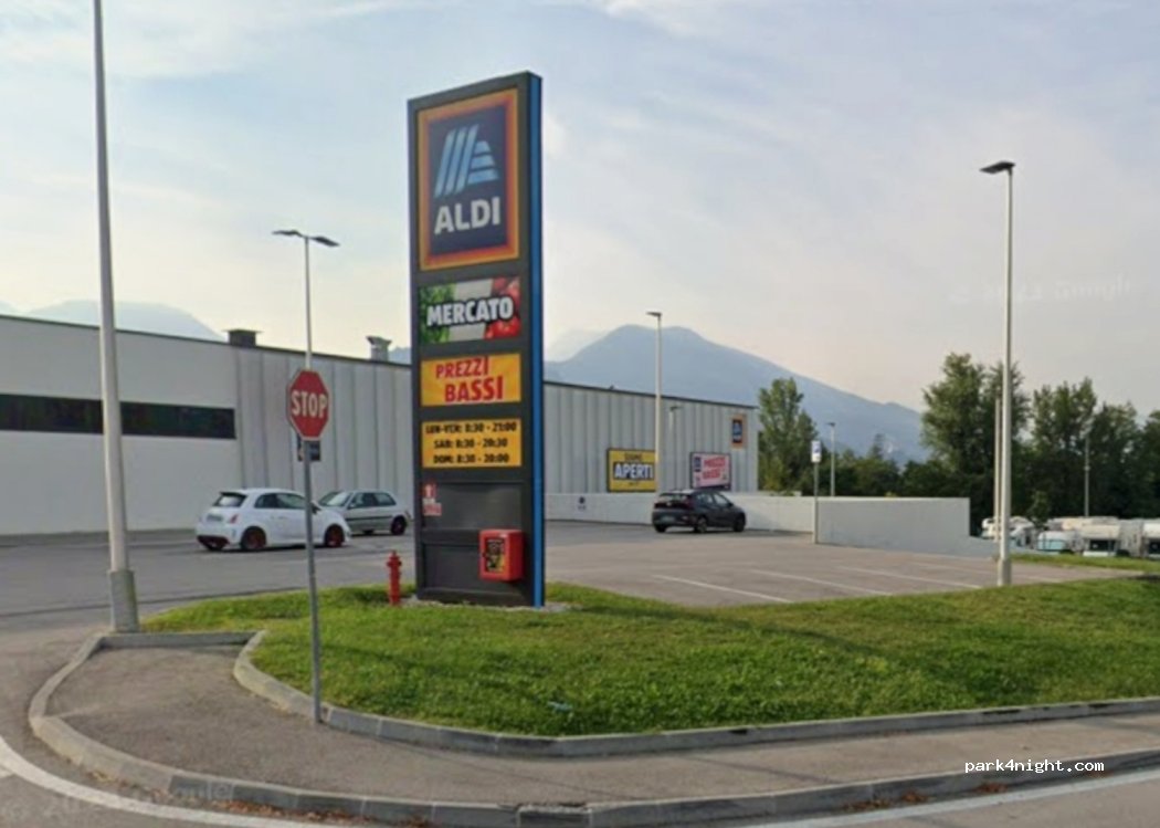 Parcheggio del supermercato Aldi. Molto spazioso e comodo per sostare mentre si fa la spesa o si va a fare un giro in centro città.