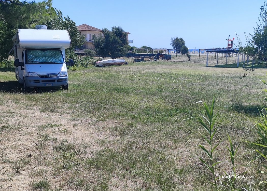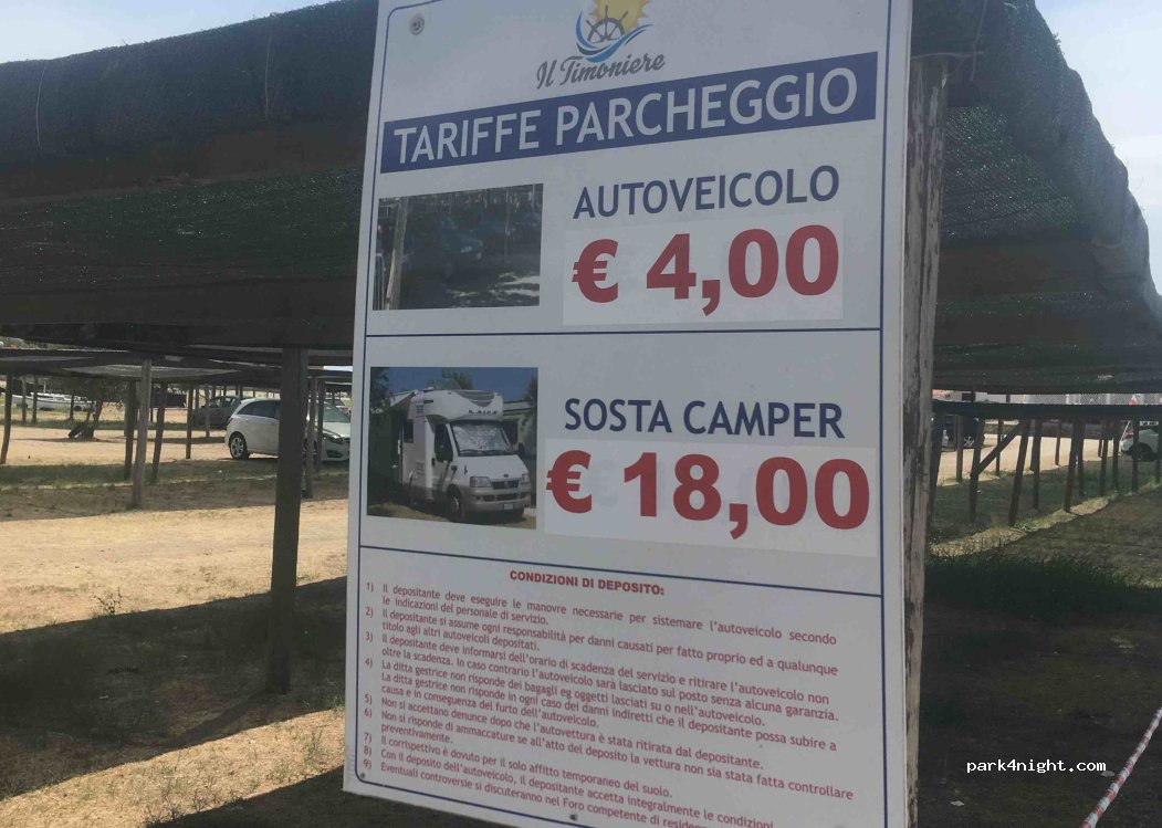 Parking at Lido Il Timoniere. Quiet place for one night. Average restaurant prices. Shower and toilet included. Friendly owners