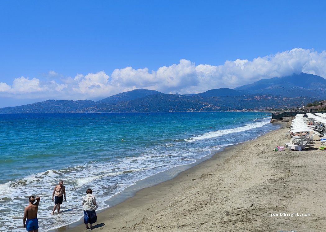 Parken am Bad Lido Il Timoniere. Ruhiger Ort für eine Nacht. Durchschnittliche Restaurantpreise. Dusche und WC im Preis inbegriffen. Freundliche Manager