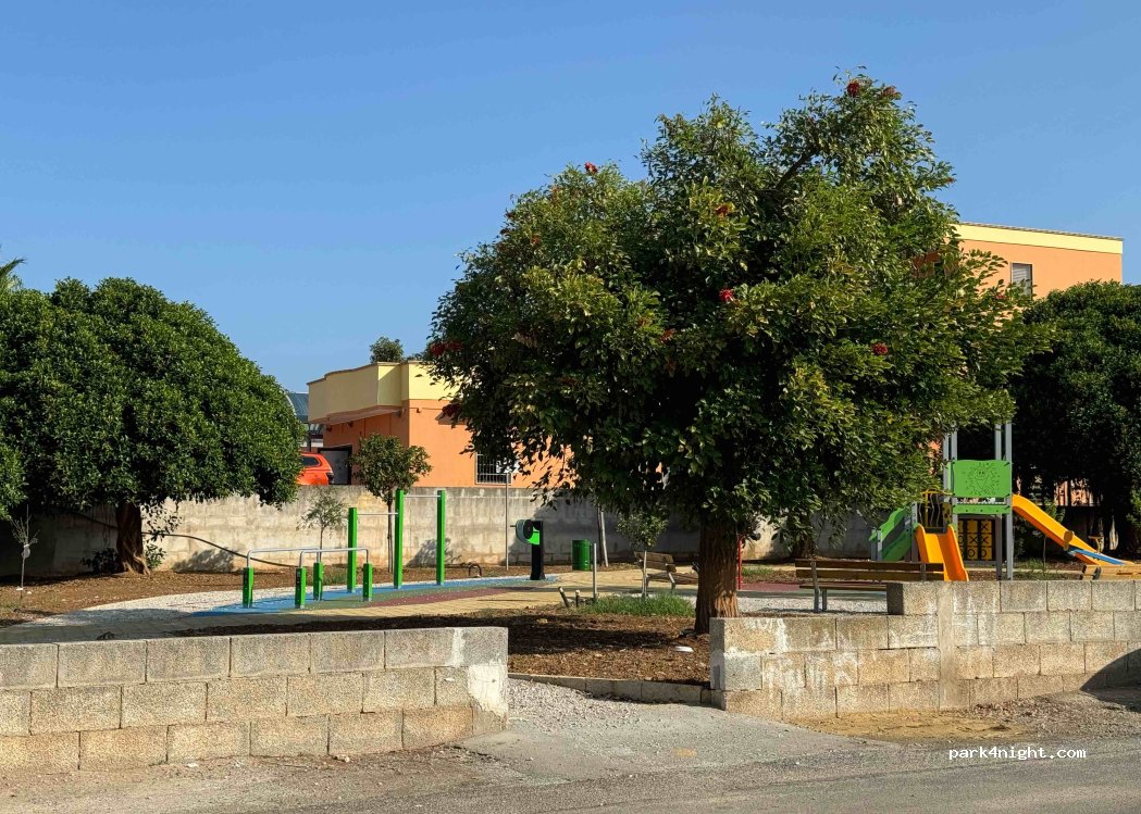 Comodo spiazzo con parco giochi di fronte per sostare giorno e notte, senza servizi