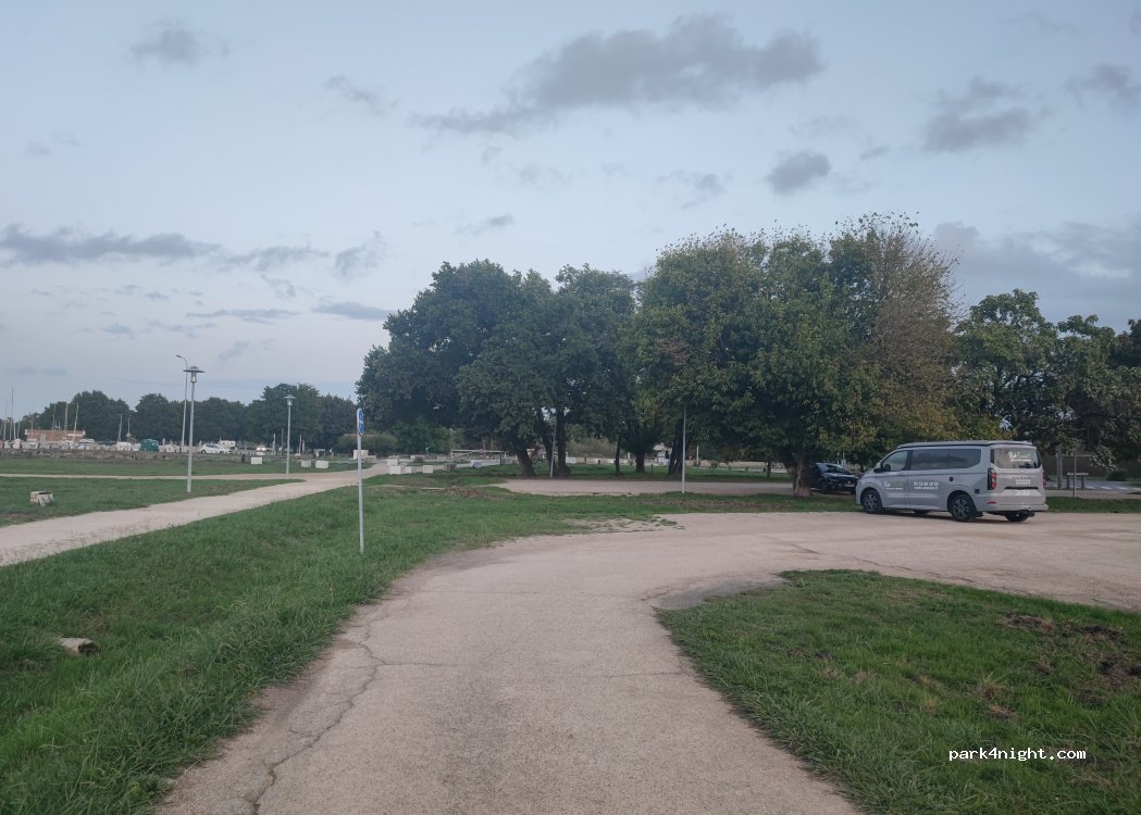Super spot! Nous avons dormi 1 nuit au calme sous les arbres le long du port. Tout y est: toilettes publiques tables de pique nique douches jusqu’à 19h et aire de baignade surveillée! nous étions plusieurs van et même 2campings cars. Merci à la municipalité de tolérer notre passage!