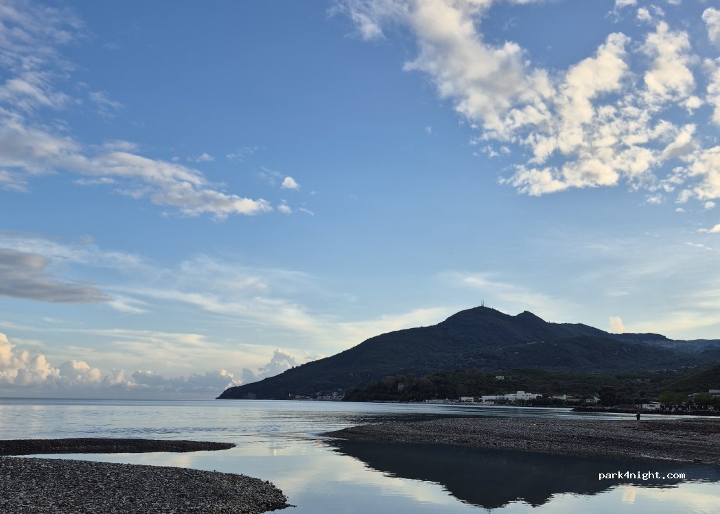 Parken am Strand an der Flussmündung. In der Hochsaison ist es ein ziemlich ruhiger Ort, abends kommen einige Leute vorbei und Badegäste kommen morgens gegen 8 Uhr an.