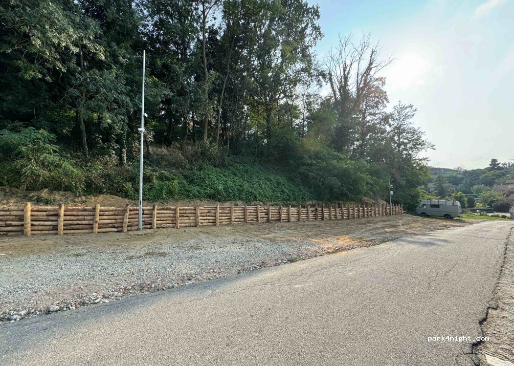 Parcheggio nuovissimo lungo una stradina ai piedi di Villafranca. Tranquillo di notte, ma le campane della chiesa suonano tra le 8:00 e le 23:00. Nessuna restrizione sul tipo di veicolo o sulla durata della sosta.