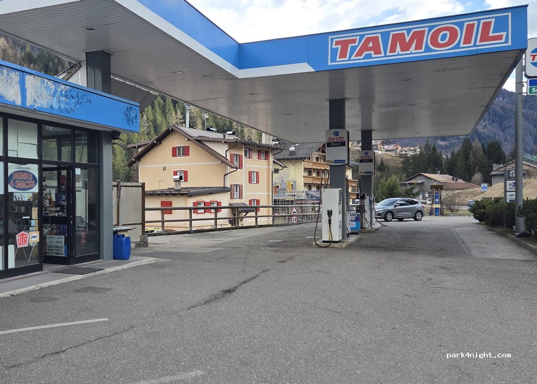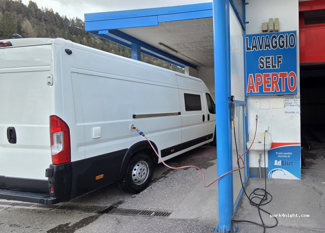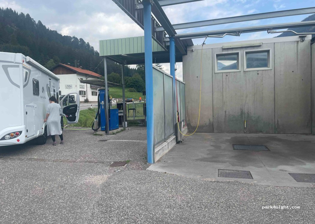 Great for water refill. The gas station was closed, but no problem, the water was open. You need a hose or watering can. Left the owner 2€, under the door.