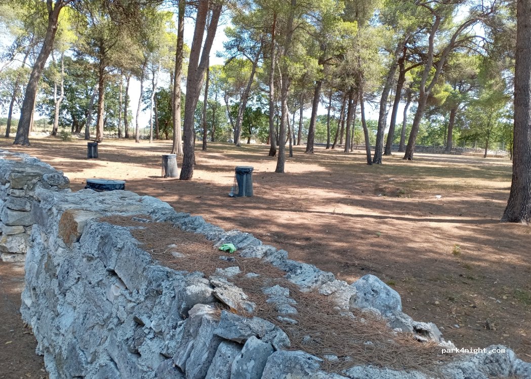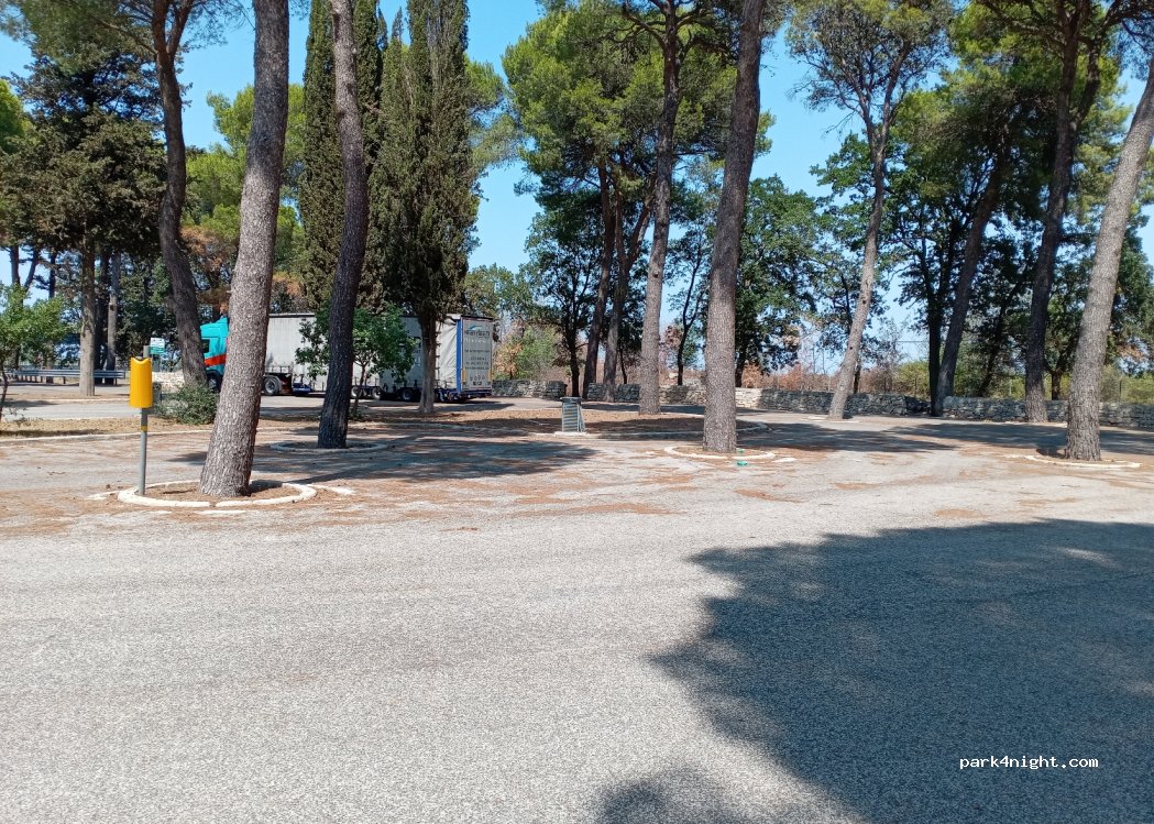 I gave it 5 stars for what it is. it is a stop along the road to stop. very convenient before taking the ferry from bari the next day. it was clean in comparison with other stop areas, there were bins, a large space for a dog to run and play, very shady, flat,spacious and quiet. we were alone for the night.