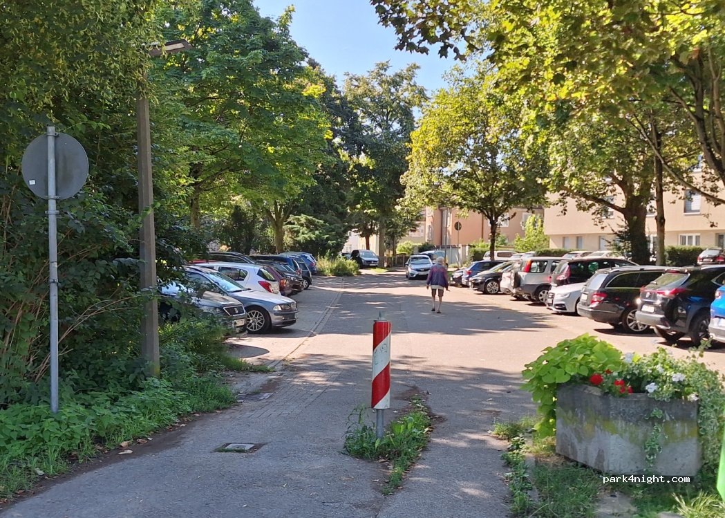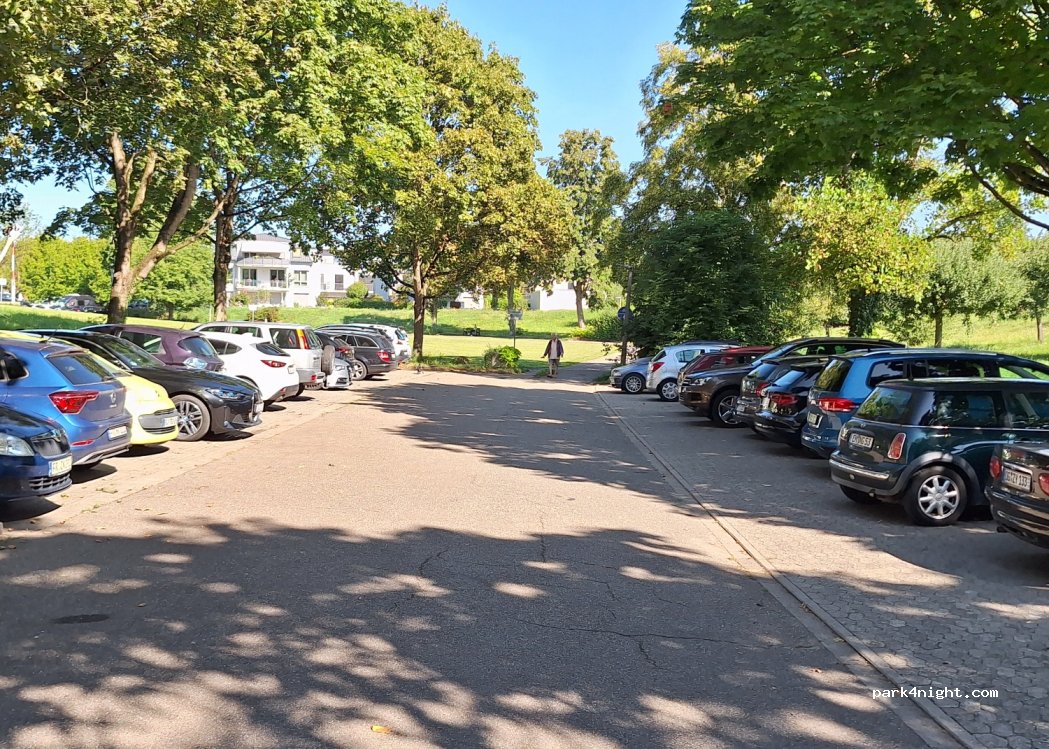 Parkplatz hinter dem Krakenhaus im Krankenhauspark. Keinerlei Einschränkungen ausgeschildert.
