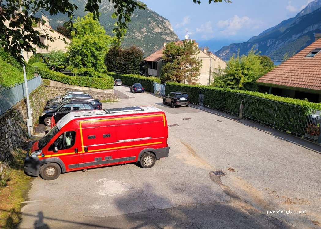 Parking in residential area. Very quiet for the night. Very convenient because close to Lecco. Belvedere 20min walk. No signs prohibiting campers or vans