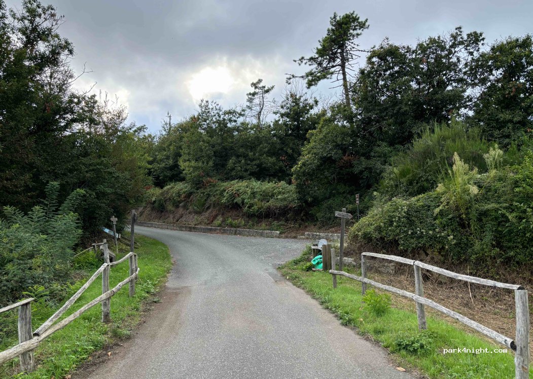 L'emplacement se situe le long d'une route sur laquelle passe quelques cyclistes. Il n'y a pas d'habitation, l'emplacement est en pleine nature, on a entendu un chevreuil pendant la nuit. C'est assez plat et il y a la place pour 1 ou 2 véhicules. Idéal pour rester dormir avant d'aller visiter les Cinque Terre !