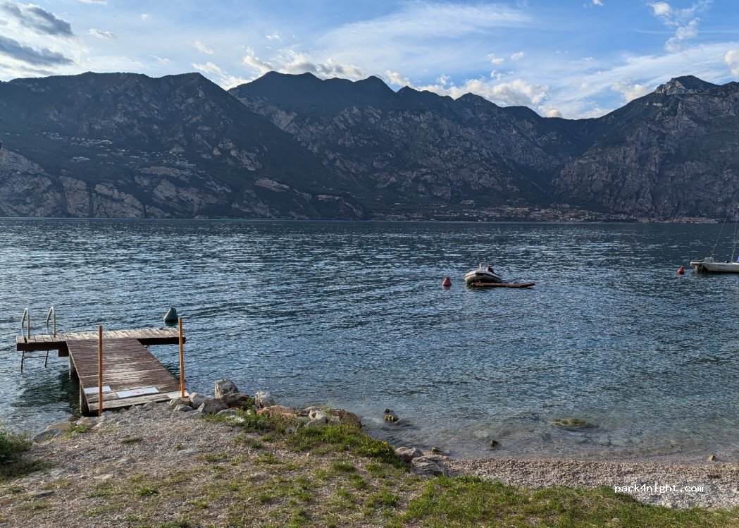Parcheggio a pagamento (1,15€/h) dalle 9.00 alle 20.00, ma non ho mai avuto il controllo stando vicino all'auto tutto il giorno... Limite di altezza, adatto solo per Van e auto. Vicinanza alla strada ma un po' di vegetazione e il rumore del lago la addolciscono.