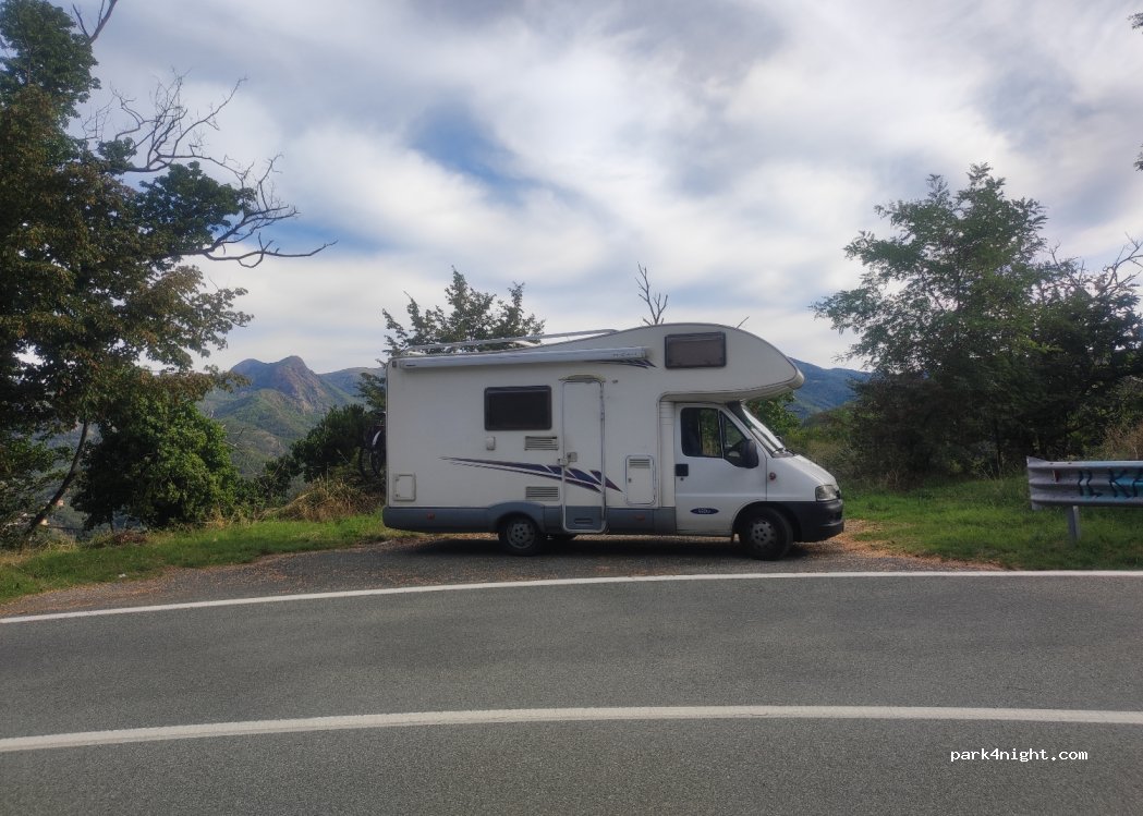 Roadside stop, space for one camper van. Nice view behind the trees.