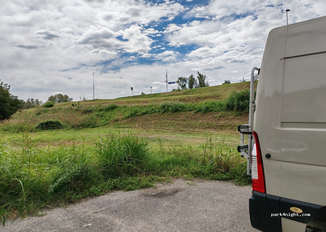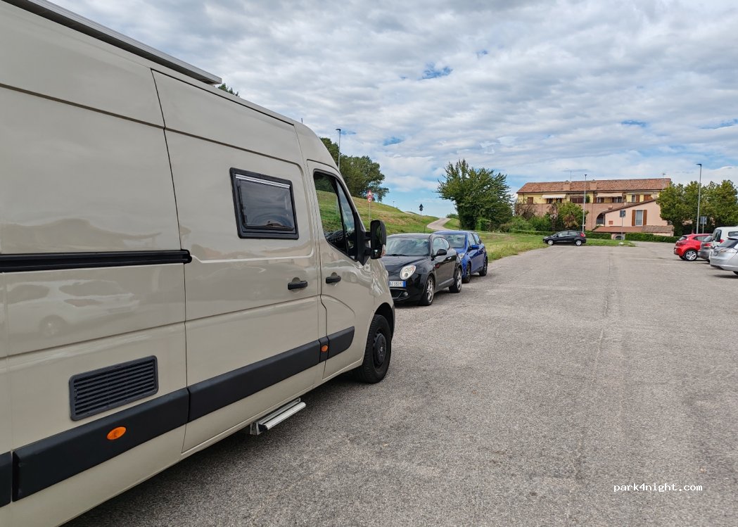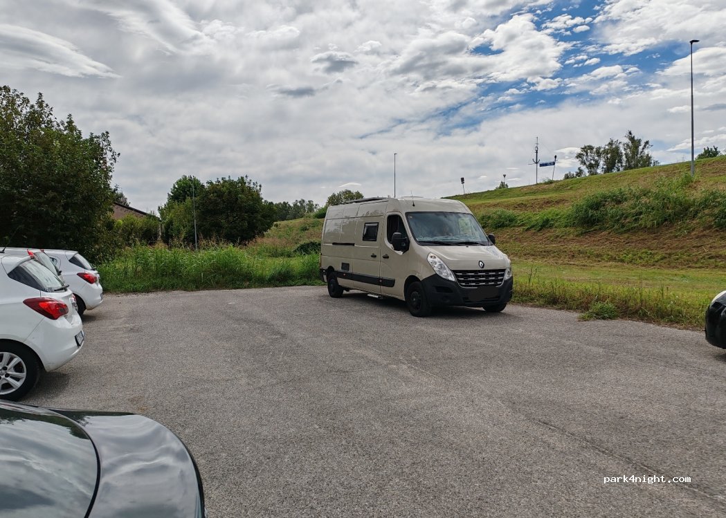 Parcheggio molto pianeggiante, asfalto, ottimo per passare la notte, molto tranquillo