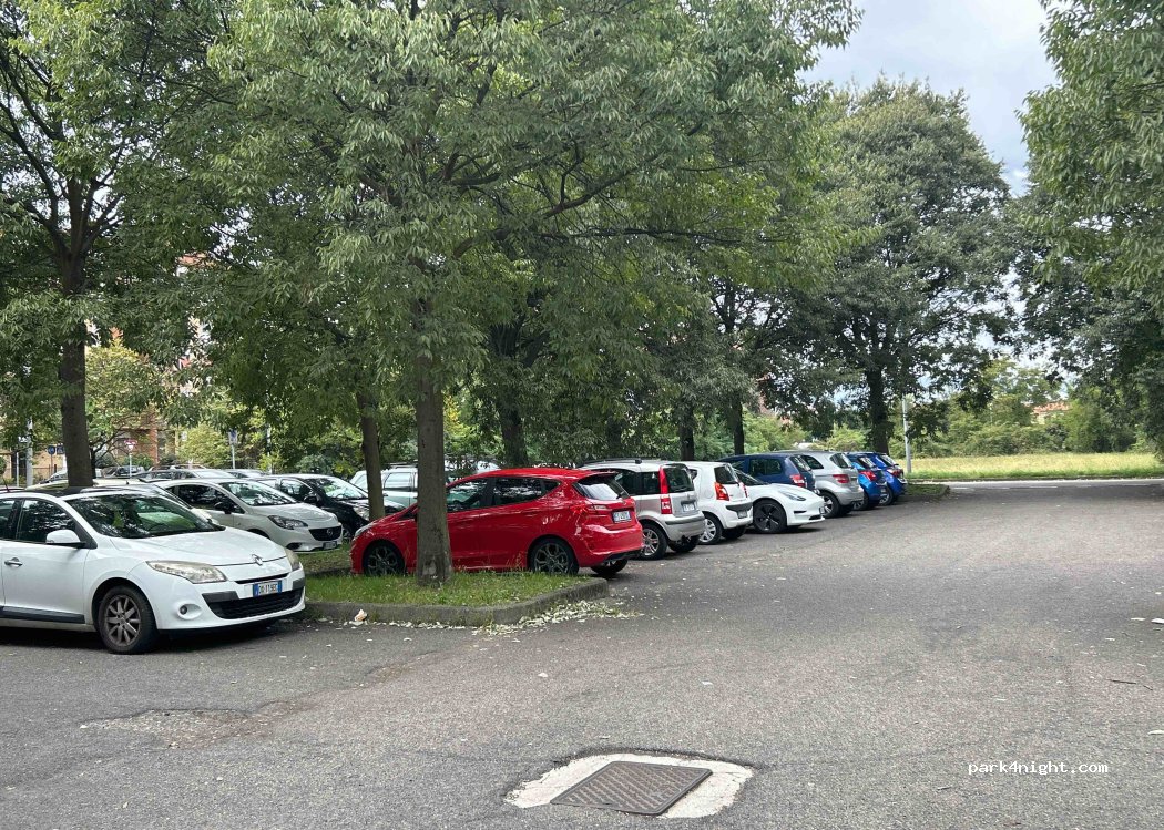 Grande parcheggio gratuito, si può sostare anche la notte, di giorno si riempie di auto delle ditte vicine, comodo x visitare Milano, fermata pullman a 300mt che porta alla fermata Metro “M2 Molino Dorino” che va in Centro Milano. Per trovare parcheggio nei giorni feriali bisogna arrivare dopo le 18:30, mentre nei festivi non c’è problema, a 200mt c’è un panificio Salumificio ( Nico Milk) la proprietaria alla cassa parla ottimo Inglese