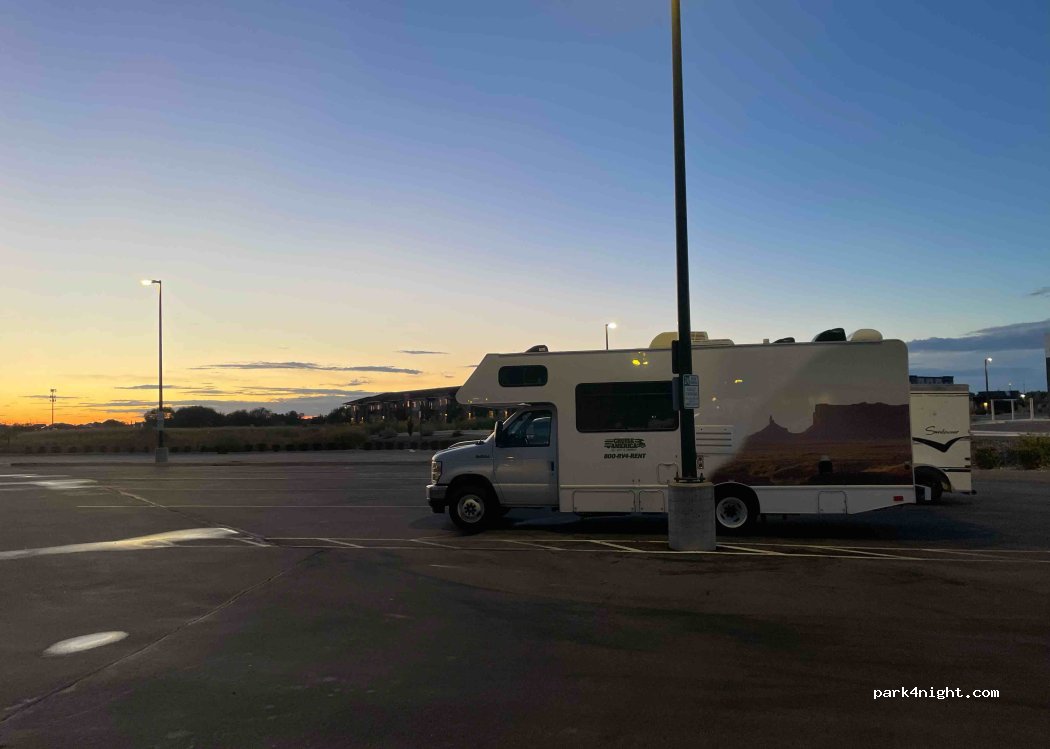 Cabela's store parking lot allows RVs to park overnight. We still asked a store employee for confirmation who thanked us for asking and confirmed that it was planned for. Located in a commercial area, close to highway access. Multiple restaurants nearby.