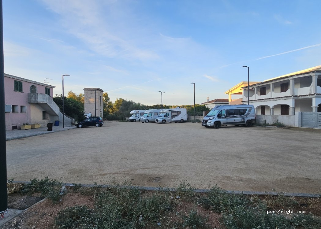 Parcheggio abbastanza ampio a circa 500 m dalla spiaggia. Il bar vicino non è contento di avere i camper parcheggiati e mette la musica alta anche alle 3 di notte.