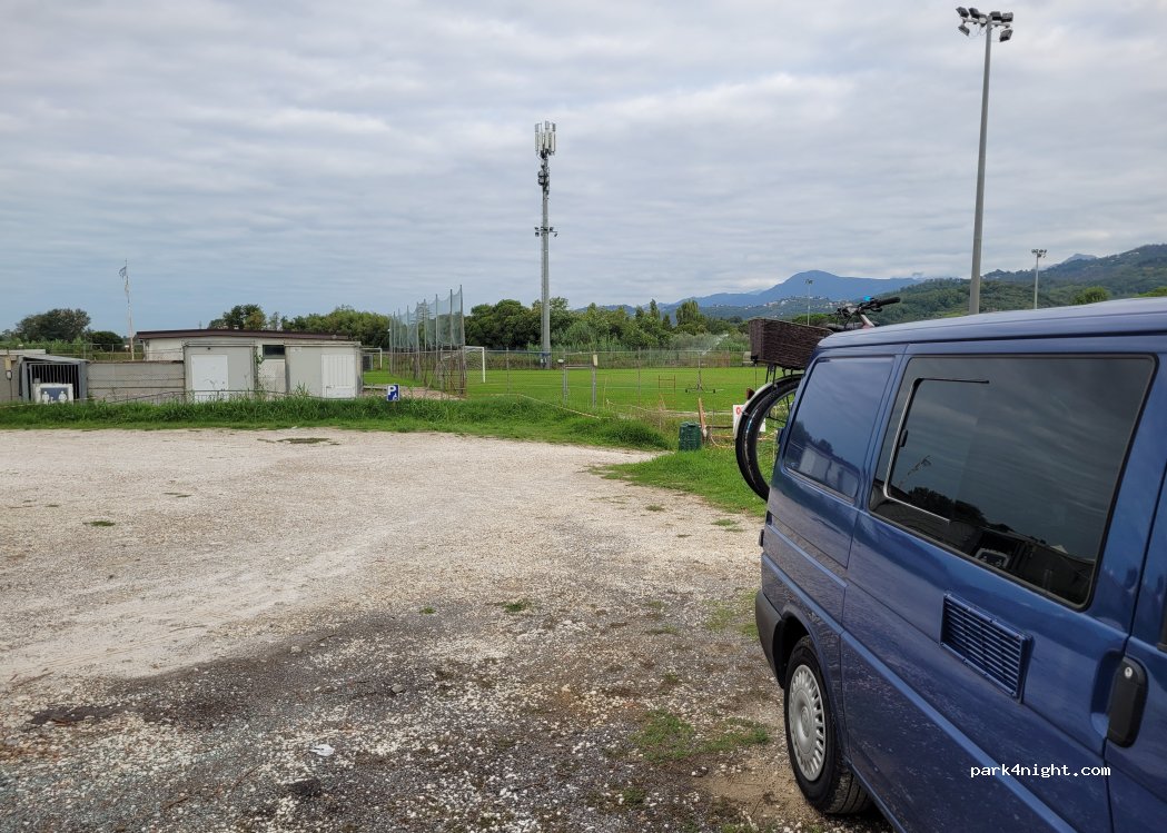 Parcheggio in area tranquilla vicino campo sportivo . Bagni pubblici aperti 24h 7/7