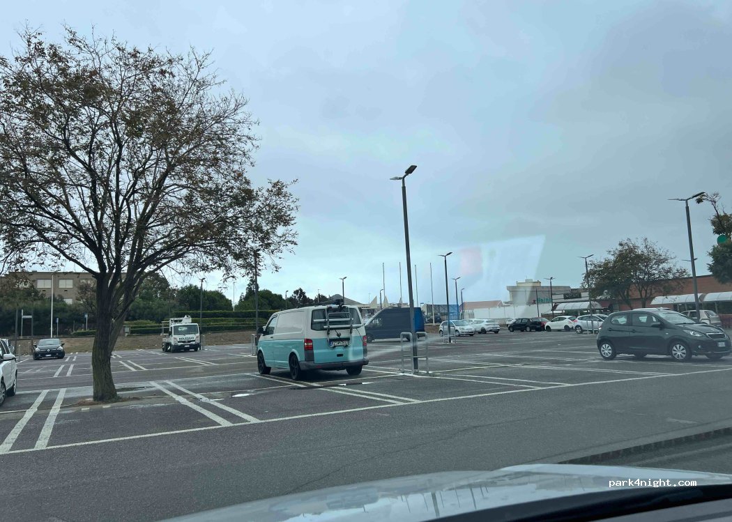 Zona tranquilla e serena, con a fianco i supermercati. Non ci sono colonnine per la ricarica o per l’acqua