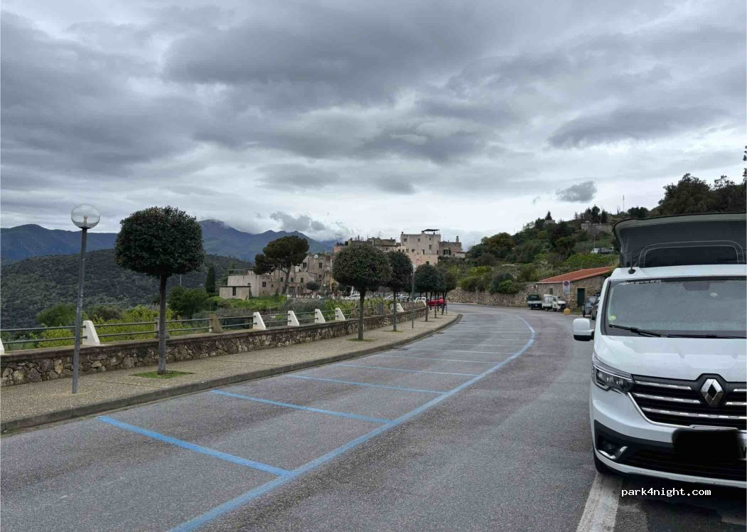 Après une petite montée assez raide et quelques virages en épingle très serrés, on arrive sur ce beau parking. Nuit très calme, personne en cette saison. Aucune service. Mais rien que pour la vue, ça vaut la montée !