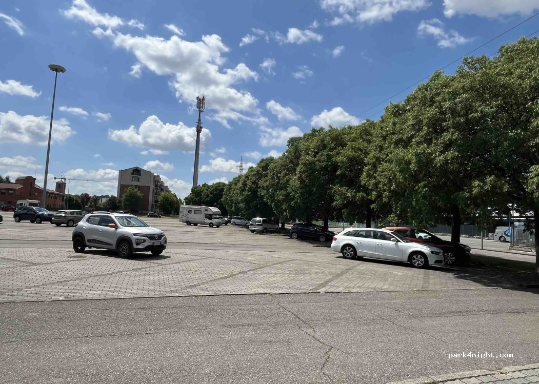 Large free parking next to the sports hall, very quiet, 2.1 km from the center of Parma. Shopping center and restaurants nearby. Good solution when Area Sosta Camper is full.