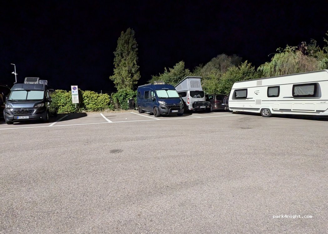 Abbiamo passato una notte qua, tutto tranquillo e comodo. Presente la colonnina dell’elettricità che funziona, c’è la postazione di carico/scarico ma il carico dell’acqua non funziona quindi puoi scaricare solo acque nere e grigie