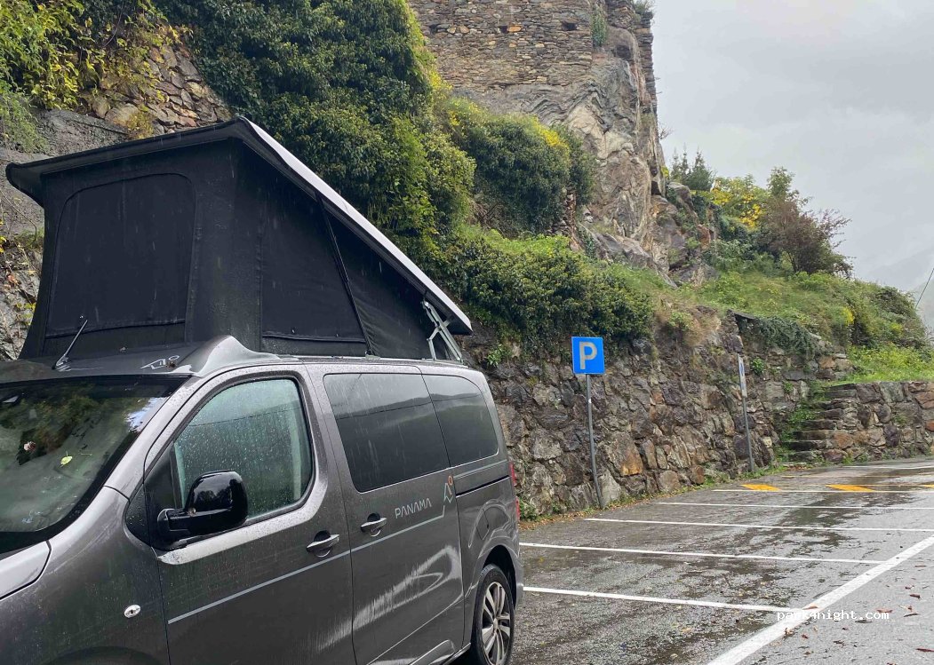 Parcheggio per 6 posti sotto Notre Dame de la Garde, sulle alture di Pont Saint Martin (6 km), luogo tranquillo per la notte, quasi senza traffico automobilistico. Niente servizi igienici
