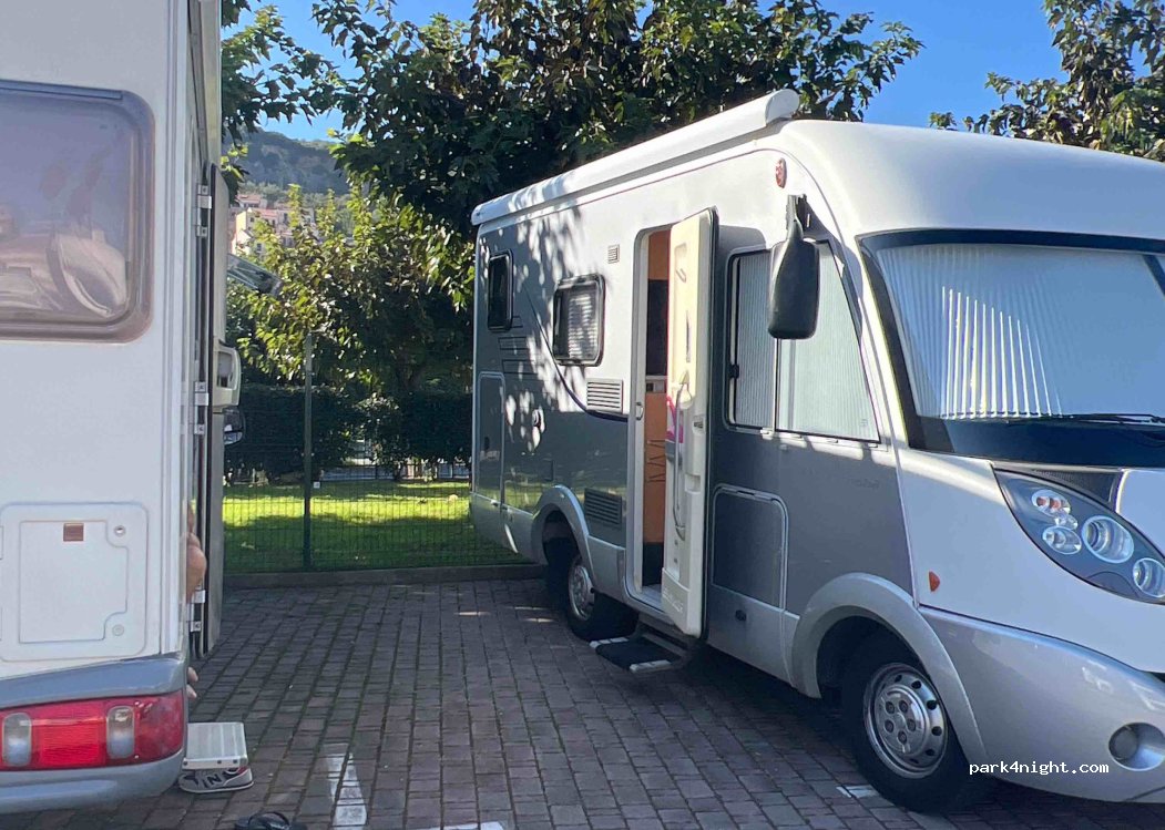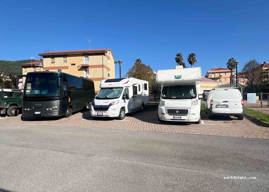 Parcheggio auto camper c’è anche un pullman. Parco Pubblico