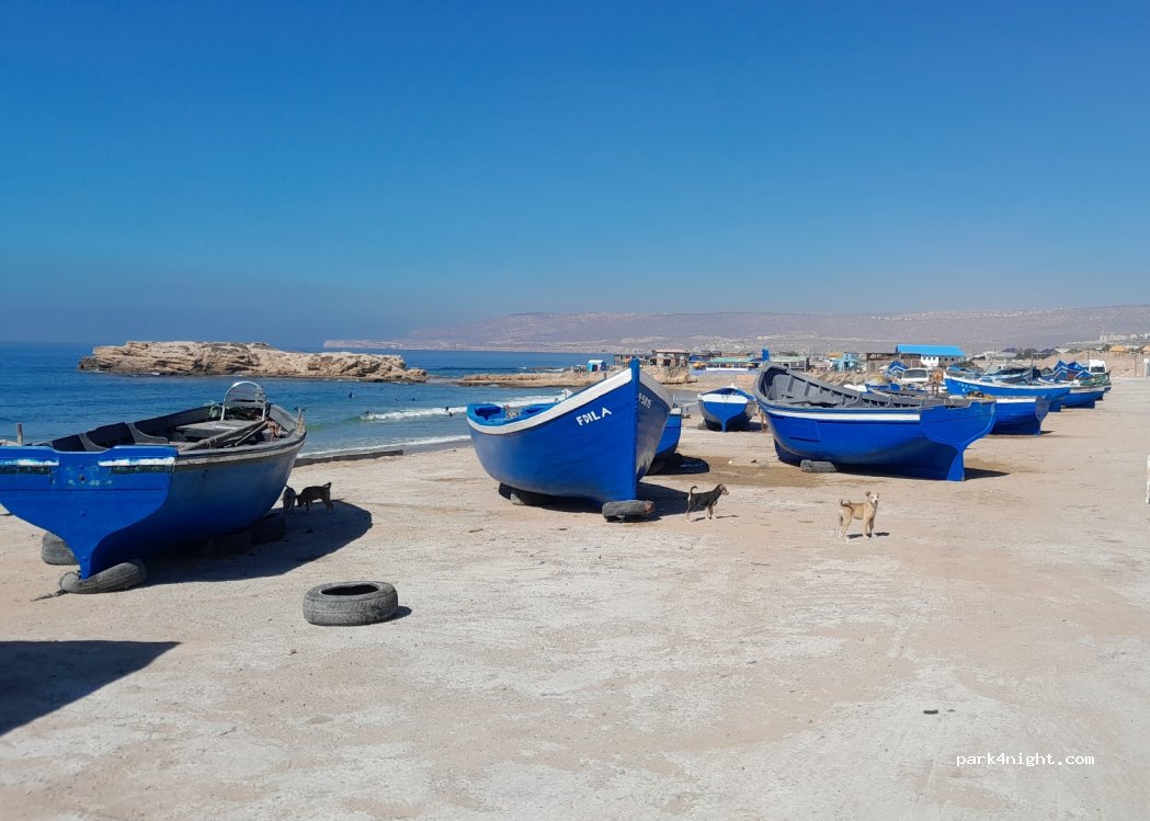 Parking en hauteur, près de la station d'épuration, le long de la plage où l'on peut se baigner avec les surfeurs. 2 CC sont déjà installés en permanence. Ils nous ont dit que les nuits sont tolérées à condition que nous ne soyons pas nombreux. Dans ce cas, la police vous demandera de partir. Cette nuit, nous étions 4. Aucun souci, le calme, le bruit des vagues et des mouettes. Seulement quelques chiens qui gardent nos CC et qui aboient dès que des intrus humains ou animaux s'approchent.