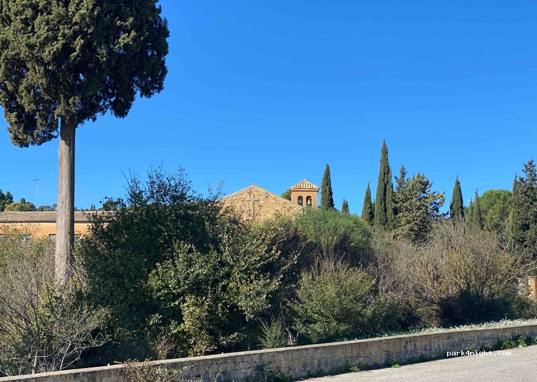 Posto tranquillo tra l’abbazia e il museo molto ampio adatto a tutte le dimensioni. Noi ci siamo messi nella parte più vicino alla strada e illuminata volendo se si continua verso il museo c’è un altro parcheggio meno illuminato. Abbastanza pulito e la sera c’è qualche via vai di macchina ma non disturbano