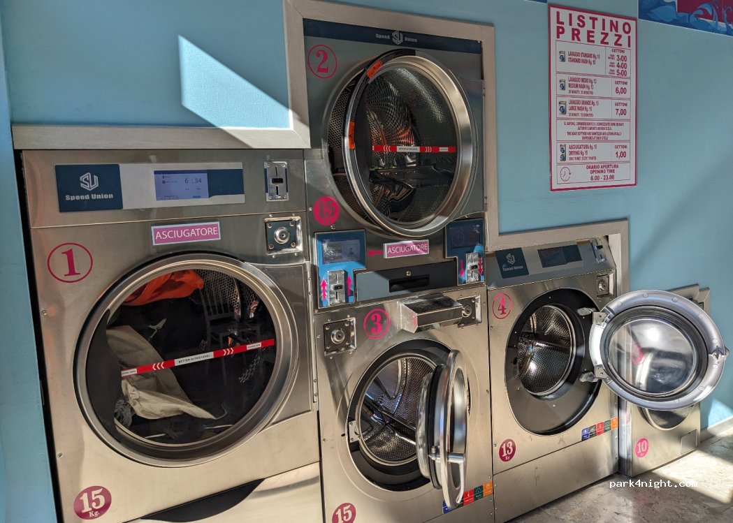 Ciao, piccola lavanderia a gettoni, accanto alla stazione di servizio En8.