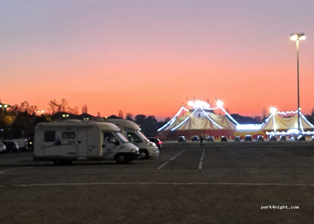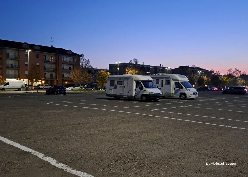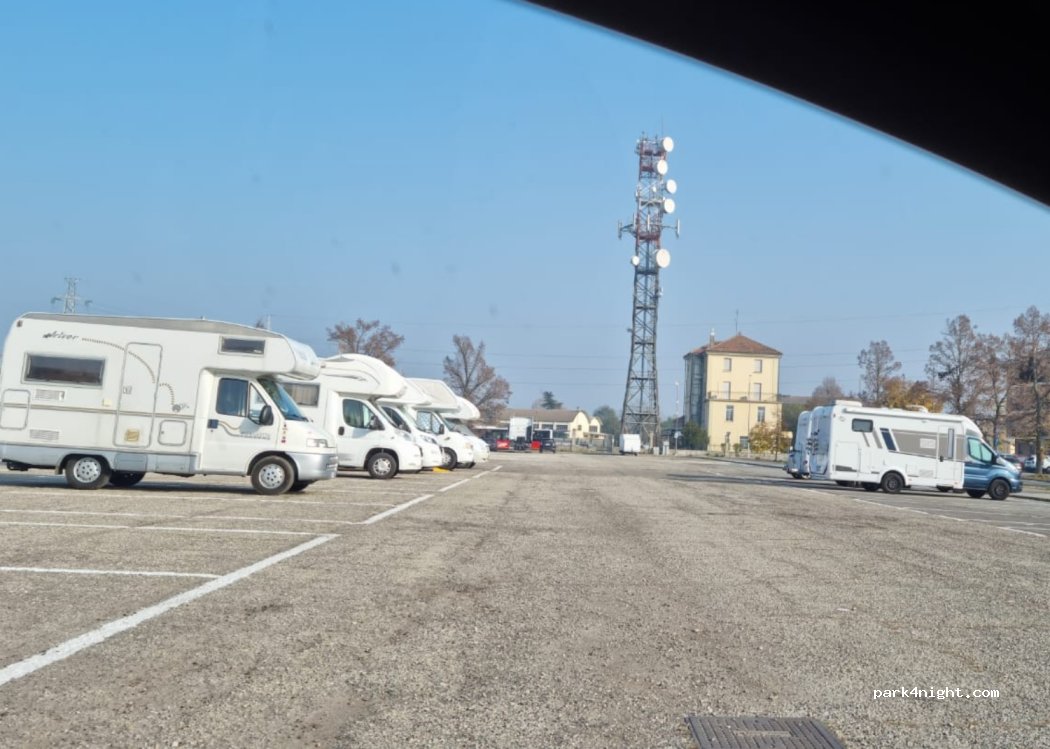 Parcheggio con stalli segnalati, in piazzaPubblica, con scarico acque nere e grigie gratuite e carico acqua potabile sempre gratuito ed utilizzabile. si raggiunge il centro in 15 minuti a piedi o con pista ciclabile. Vicino alla stazione dei carabinieri ed illuminato di notte. molto consigliato!