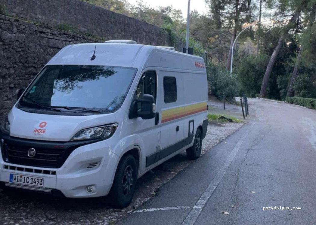 Parking pour voitures à côté d'une église. Gratuit et à 6 minutes à pied (en descendant plusieurs escaliers !!!!) du centre-ville. Il faut un peu plus de temps pour remonter. Endroit calme et sûr pour passer la nuit.