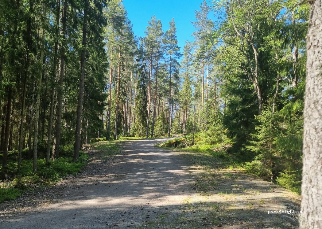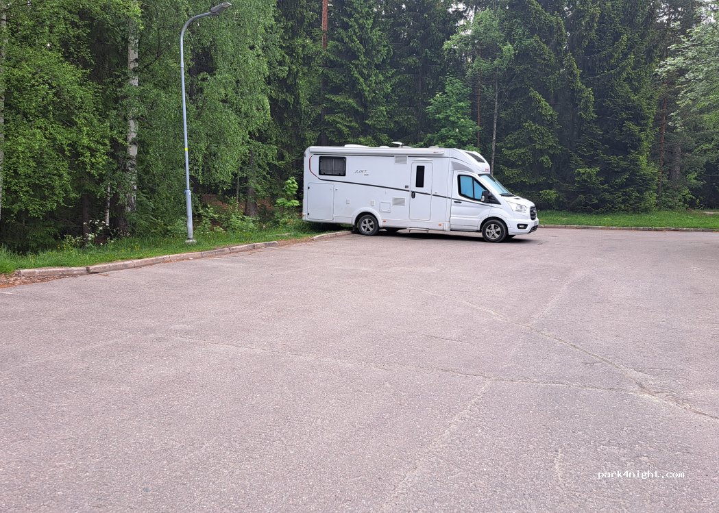 Parking très calme à 200 m du lac à côté de la forêt. A 300 m un superbe complexe sauna avec possibilité de se baigner à 2 m entre chaque séance. A 5 km du centre de TAMPERE, magnifique, avec pistes cyclables (quelques pentes modérées)