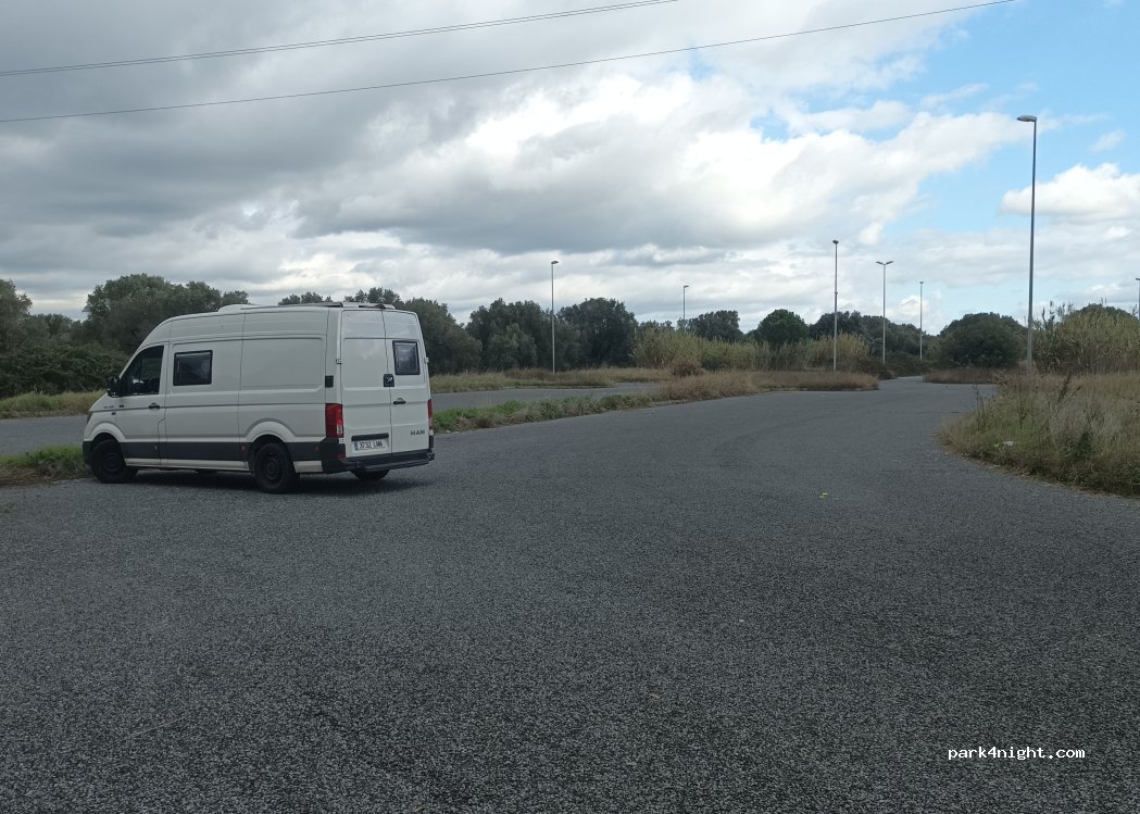 Parking separado del área de servicios de la autovía. aunque no tenga servicios propios, dispone de los del área.