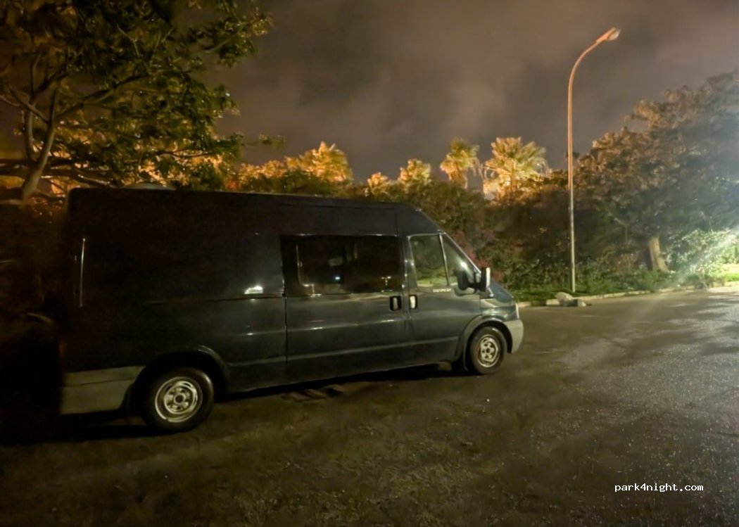 Sencillo y relativamente plano. Semiiluminado. No presenta ningún problema para autocaravanas largas. No hay ninguna señalización. Lo utilizamos porque necesitábamos algo de refugio de los fuertes vientos en temporada baja. No tengo idea de si es posible aparcar aquí en verano.