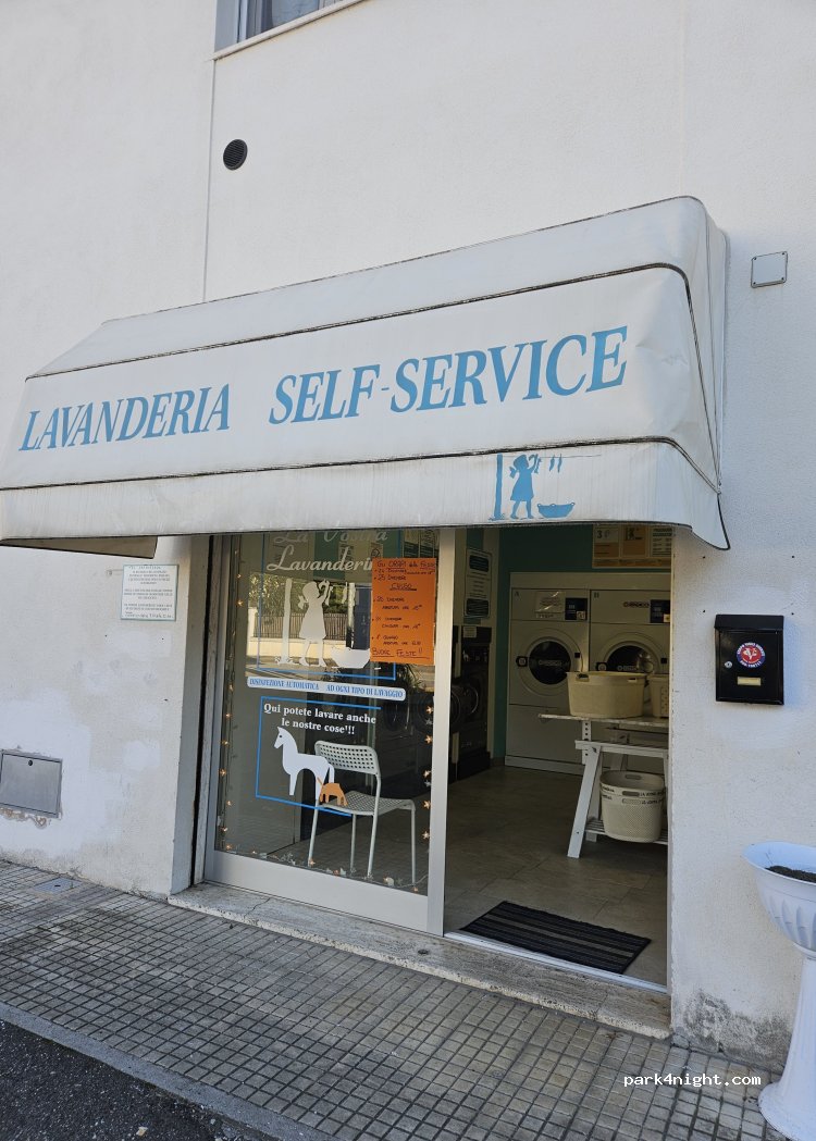Lavanderia a gettoni ben tenuta. Lavatrice, asciugatrice per 34 minuti.
